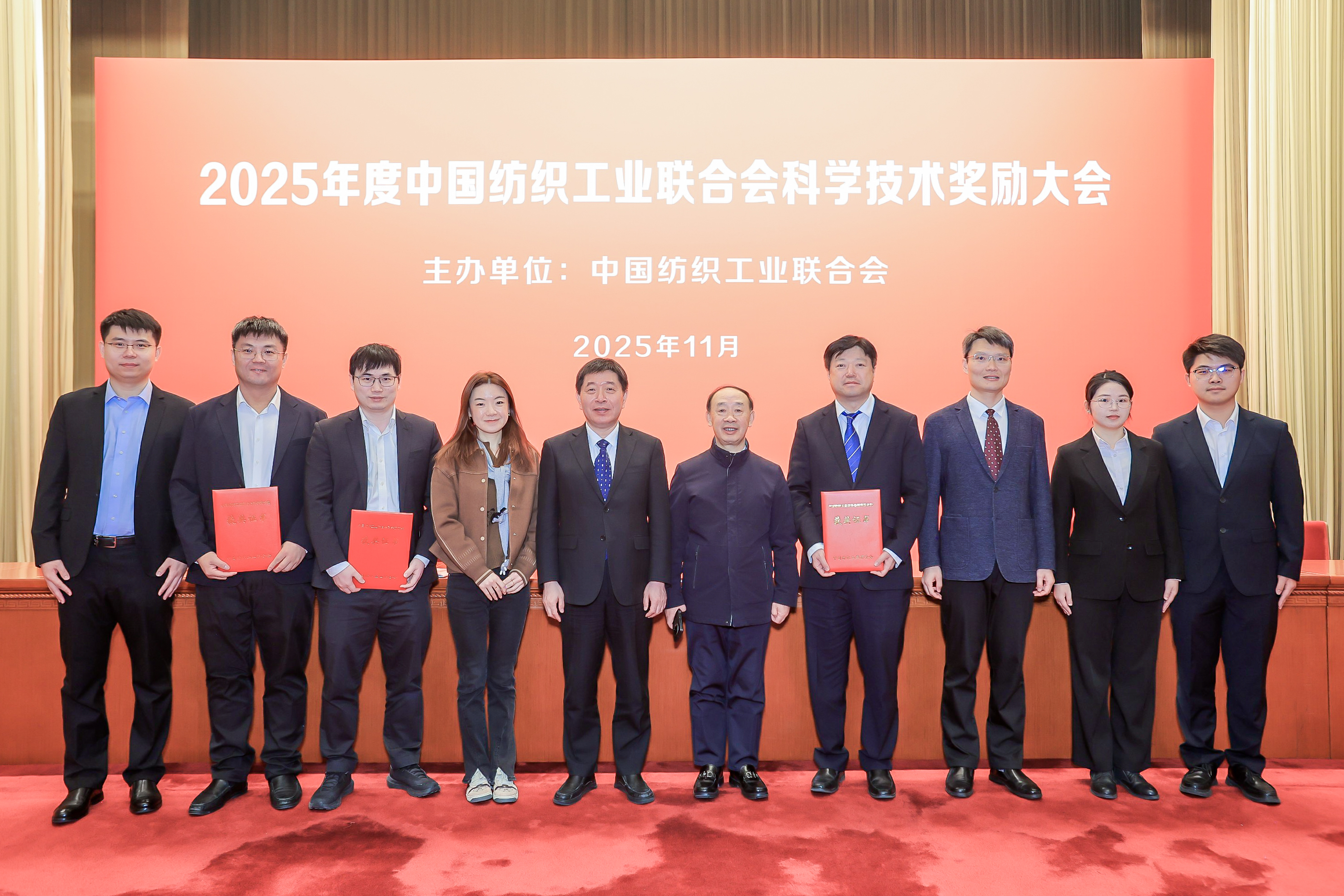 11月28日,2025年度中国纺织工业联合会科学技术奖励大会在北京人民大会堂举行,对年度中国纺联科学技术奖获奖单位和个人进行表彰。